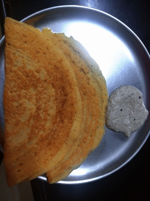Soak all the above dals together overnight. In the morning make semi-smooth paste after adding salt, ginger, garlic and green chilles. Make instant dosa. Serve with Green Coconut chutney.